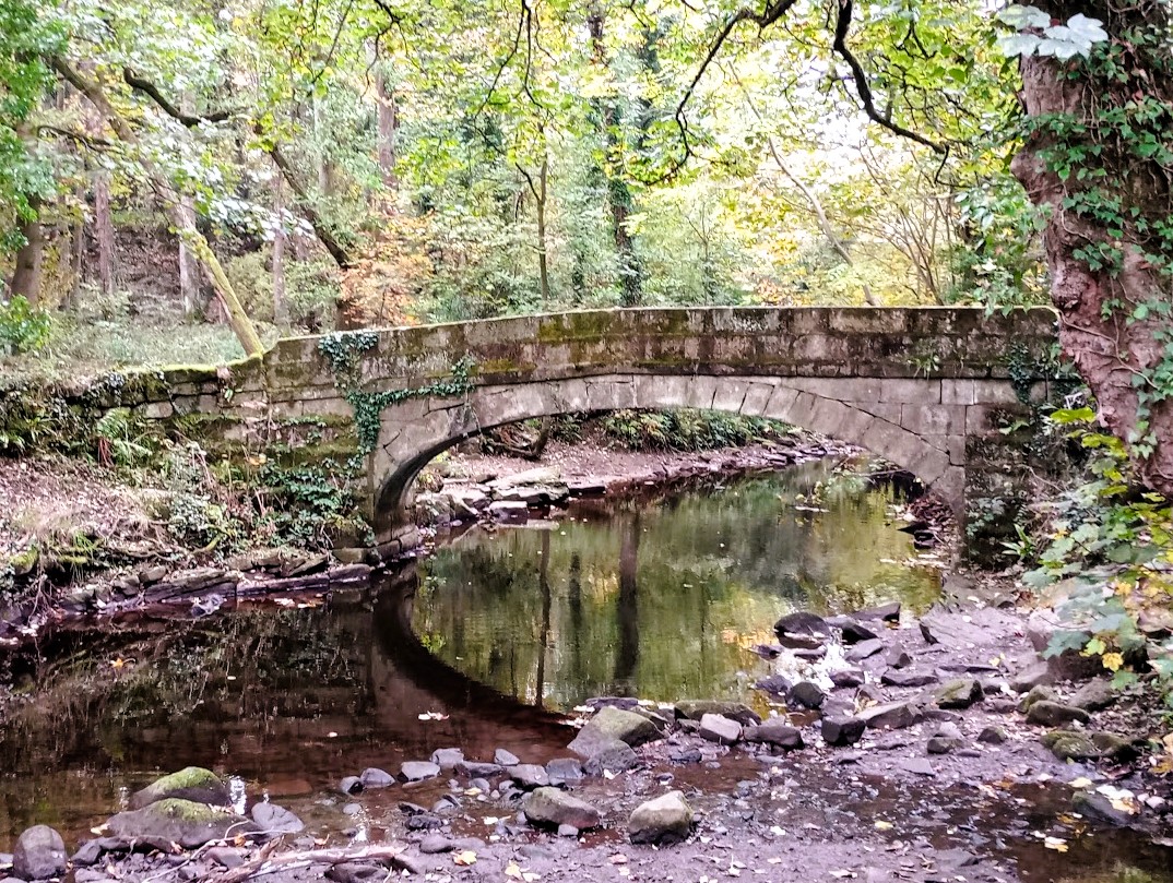 The packhorse bridge by Third Coppice Wheel dam. Looking autumnal. Photo by Mark Bateman