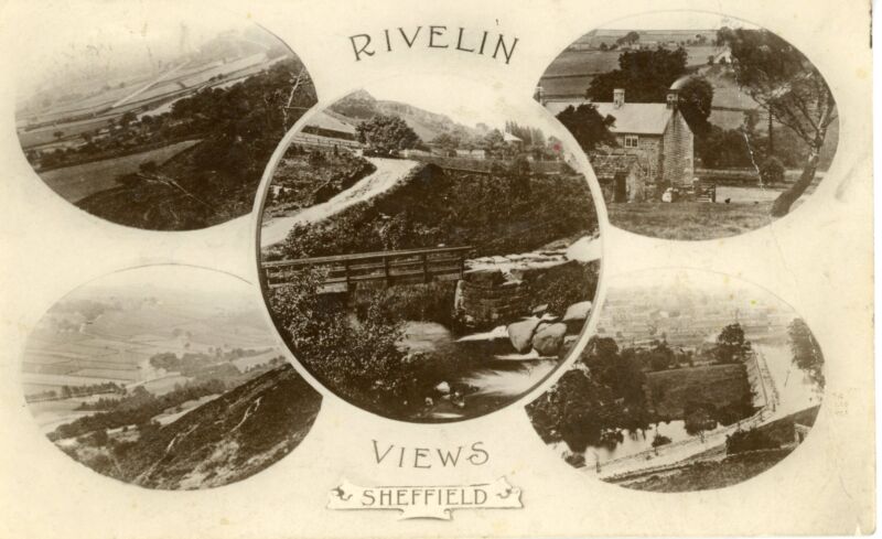 A post-card, date unknown showing old views from around Rivelin. POst-card part of RVCG post-card collection.